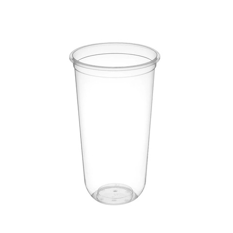 22 oz 700ml yeniden Logo baskılı tasarım tek duvar PP Pet Boba kabarcık süt çay kahve dondurma için plastik bardak kubbe kapak saman